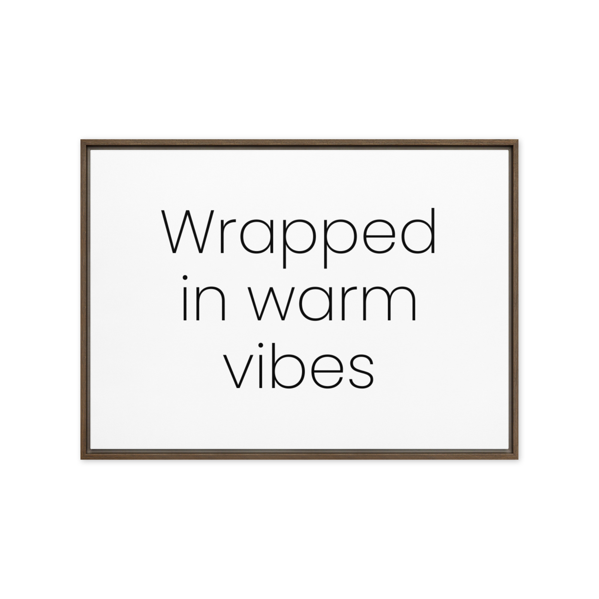 – The framed canvases with brown and black frames have a black inside around the canvas, and the canvases with white frames have a white inside around the canvas.